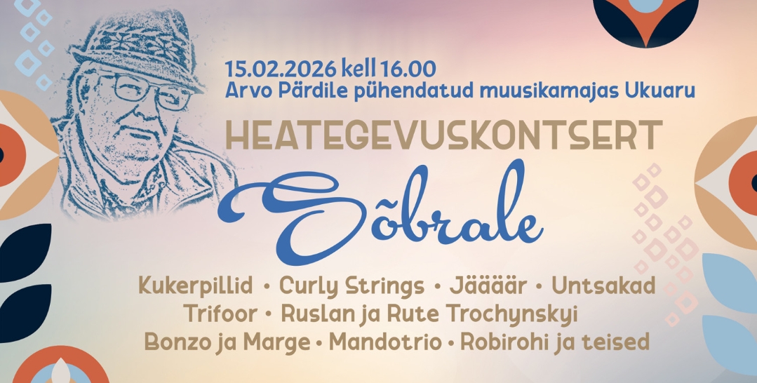 Pühapäeval 15. veebruaril sõidame Rakverre. Uues Arvo Pärdile pühendatud muusikamajas Ukuaru toimub heategevuskontsert "Sõbrale". Viru Folgi "isa" Peep Veedla toetuseks.